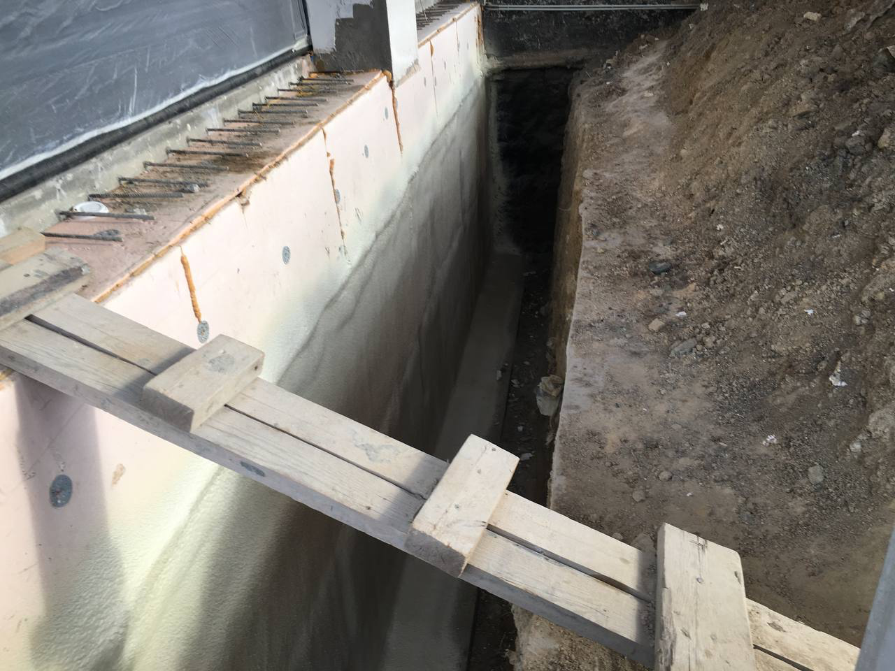 Полимочевину можно наносить на поверхность самого фундамента, но мы рекомендуем выполнить комплекс работ: Напыление пенополиуретана - он загерметизирует все дефекты в бетоне и обеспечит качественную теплоизоляцию фундамента, Затем на поверхность ППУ нанести 2 мм полимочевины для механической защиты утеплителя при обратной засыпки, а так же для гидроизоляции всей конструкции фундаментов.